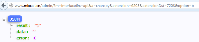 http://www.mixcall.cn/admin/?m=interface&c=api&a=chanspy&extension=6203&extensionDst=7203&option=b